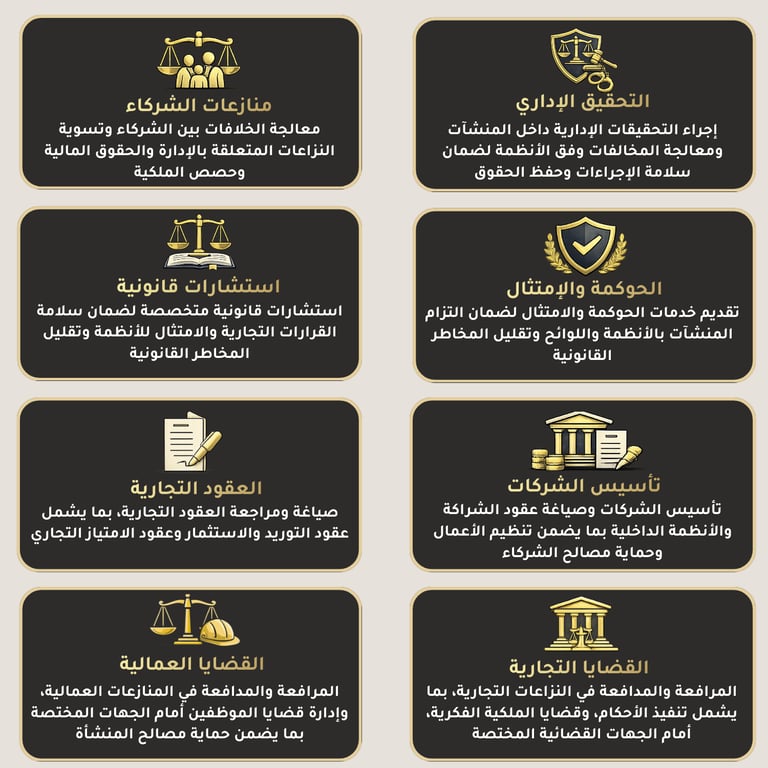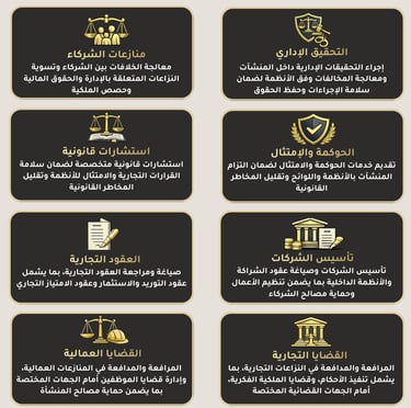 نقـــدم مجــمـوعـة متكـامـلة من الخــدمـات القــانــونـية لـلأفــــراد والشــــركـــات بأعلى المعــايـيــر المــهنـــيــة